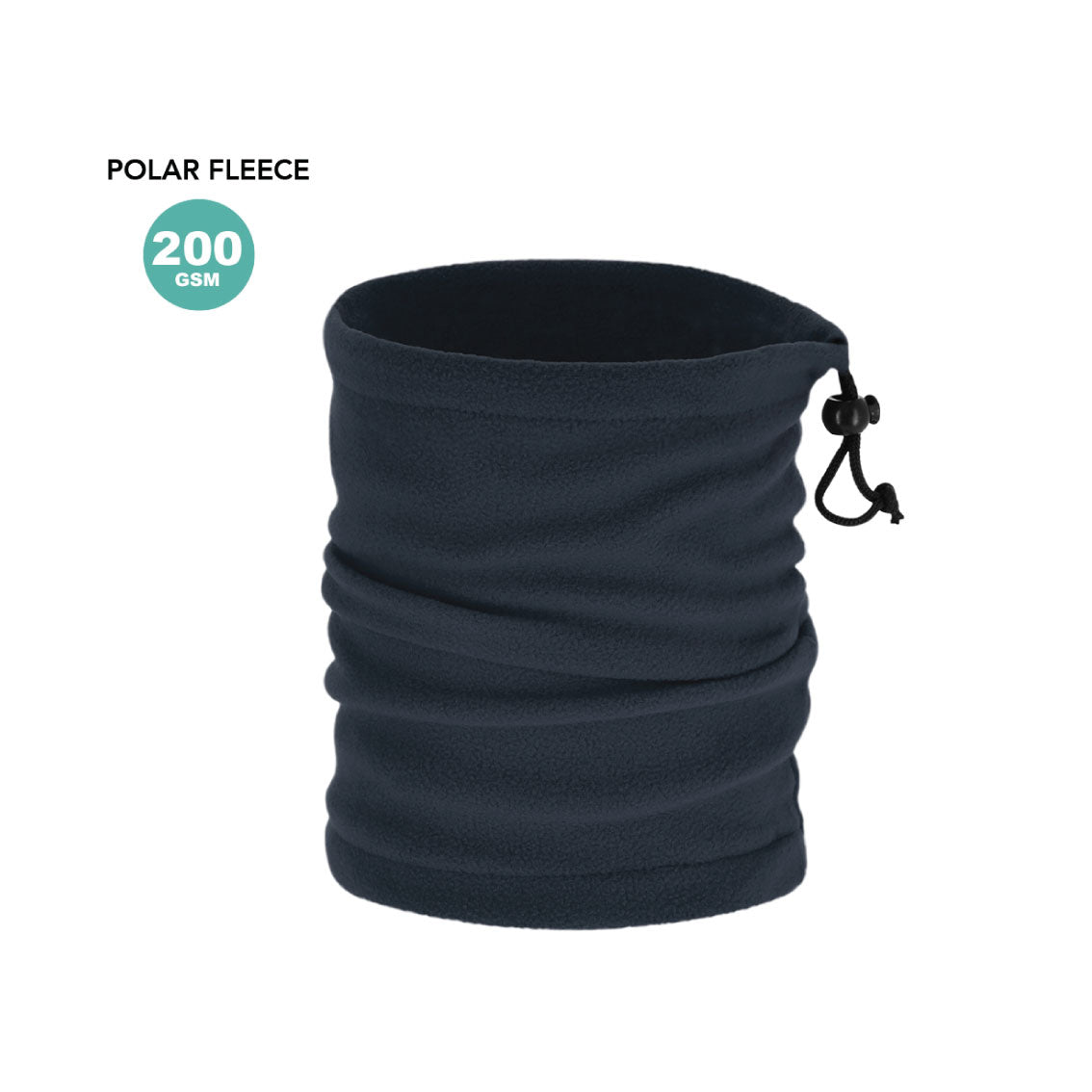 Halsvarmer i polar fleece 200 g/m² med anti-nuppebehandling. Med snorlukking og justeringstilbehør. Mørkeblå.